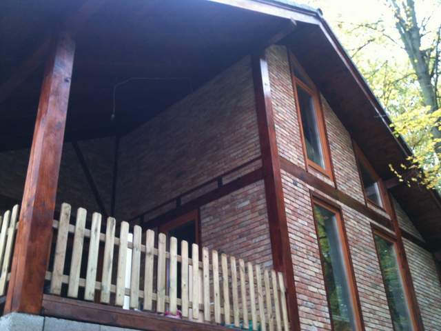 Pilisszentlászlói családi külső fa szerkezetének lazúrozása.