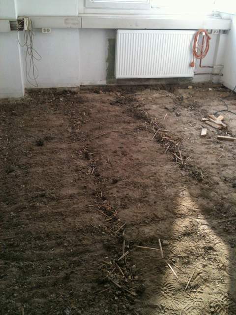 Iroda szobák régi padlószőnyeg és parketta burkolatát bontottuk vissza.