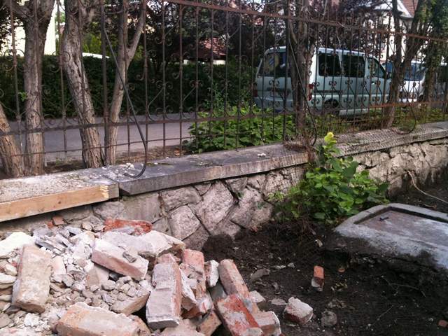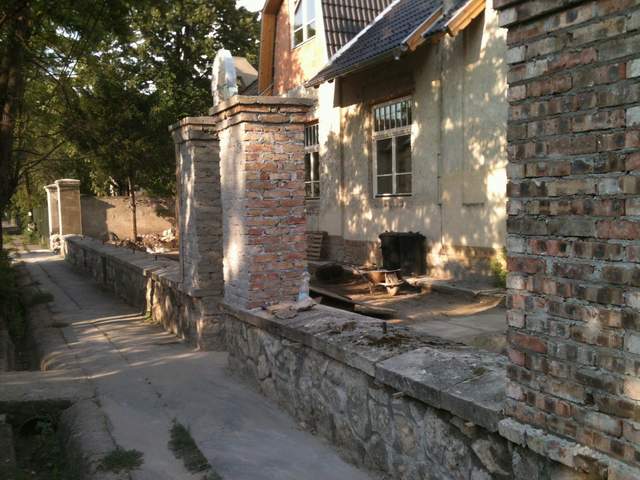 100 éves kúria kerítésének felújítása, tereprendezés.