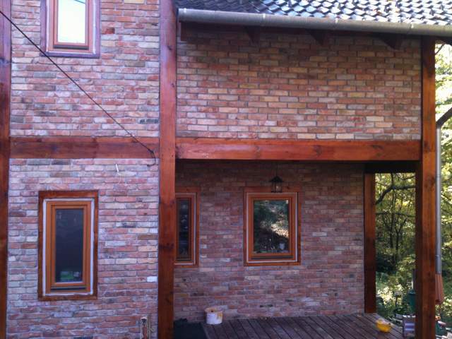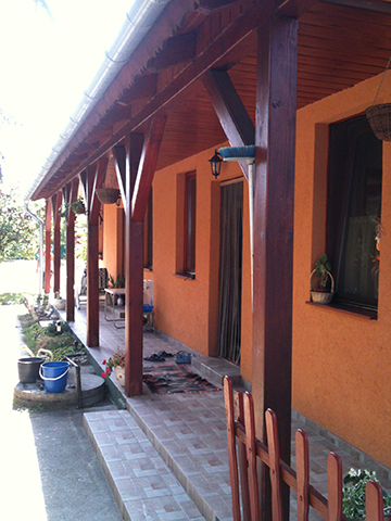 Pilisszentlászlói családi külső fa szerkezetének lazúrozása.