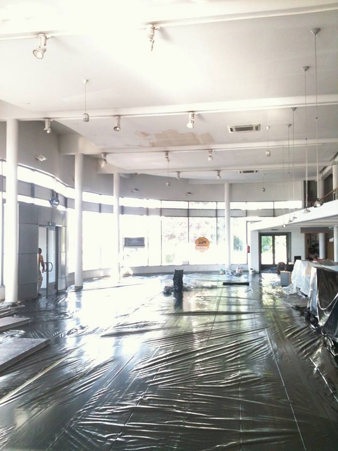 Iroda szobák régi padlószőnyeg és parketta burkolatát bontottuk vissza.
