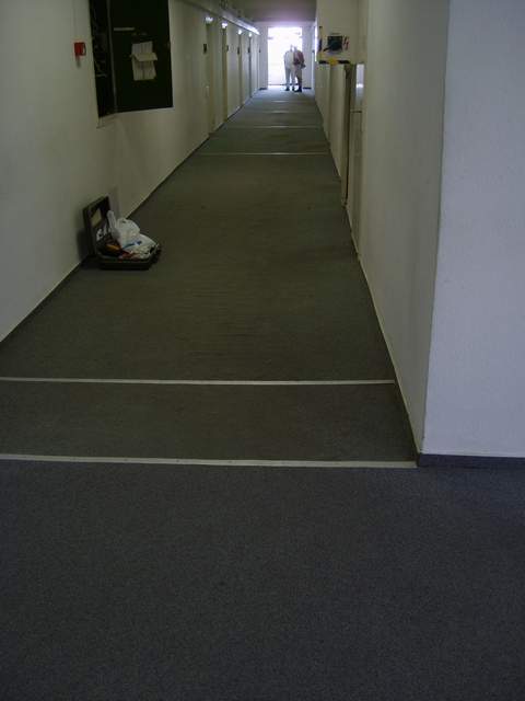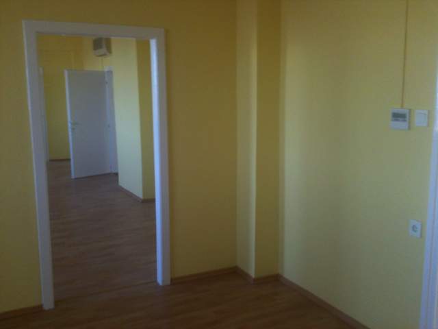 A régi padlóburkolatok bontása után az irodákban bükk színű laminált padlót, a folyosón pedig lapburkolatot készítettünk. A szobákat sárgára, a folyosót fehér színűre festettük.