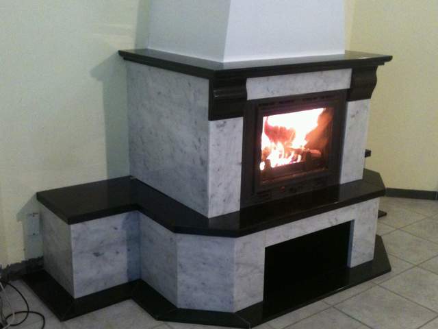 Klasszikus stílusú kandalló építését kérte tőlünk egyik kedves megrendelőnk. Díszburkolata 5 cm vastag fekete gránit és 2 cm vastag fehér márvány.