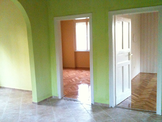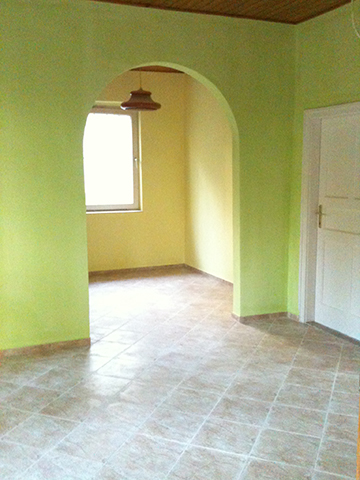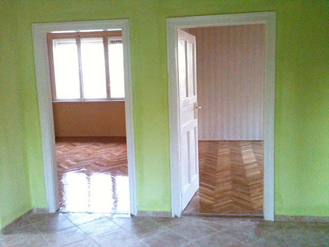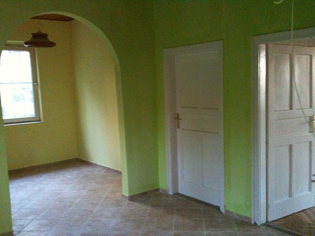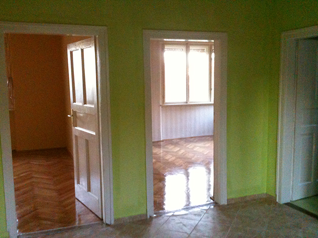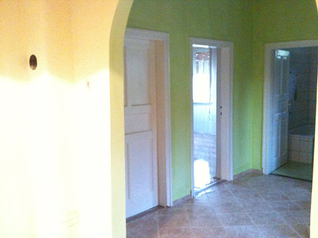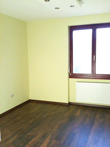 A megrendelő kérésének megfelelően, új aljzatbetont készítettünk, majd alzatkiegyenlítést végeztünk. A szobák új színt kaptak, végül bükk színű laminált padlót raktunk le.
