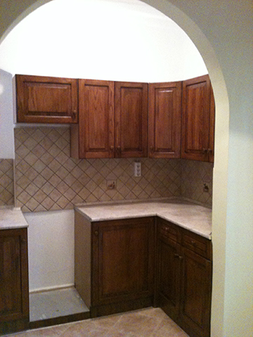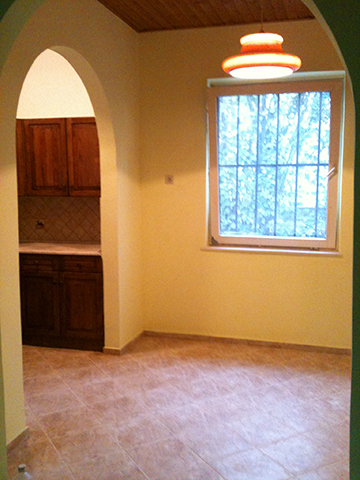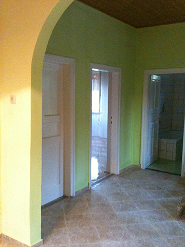 A megfelelő felület előkészítés után, színes falfestést és tapétázást végeztünk.A mennyezeti lambéria lakkozása, konyhabútor felületkezelése és a parketták felújítása volt a befejezés.