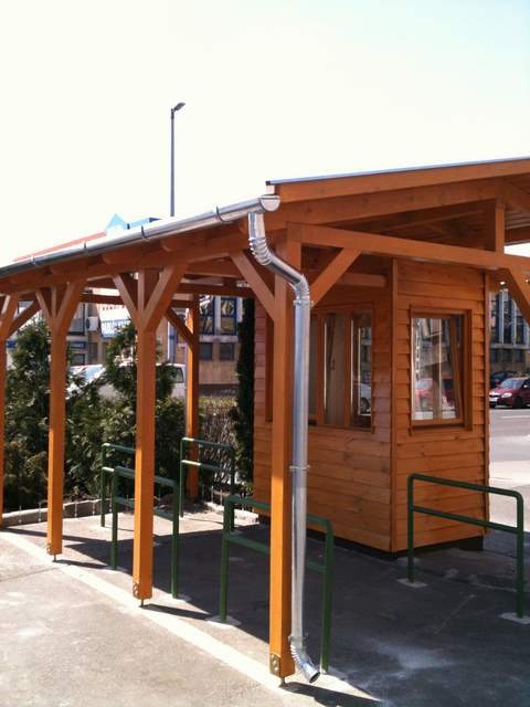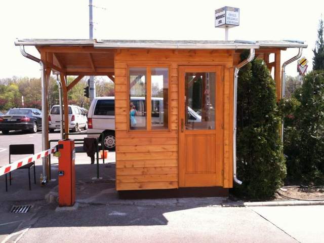 Egyedi elképzelés alapján készült. Az őrbódét hőszigeteltük, az ablakokba thermo üvegek kerültek. Felületkezelése: alapozás és két réteg vastaglazúr.